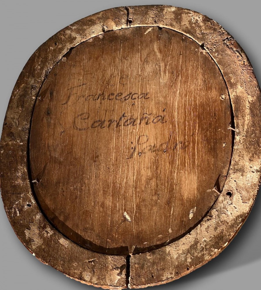 - Cadre : Bois doré mouluré, d’origine, ovale, présentant des fentes et usures anciennes