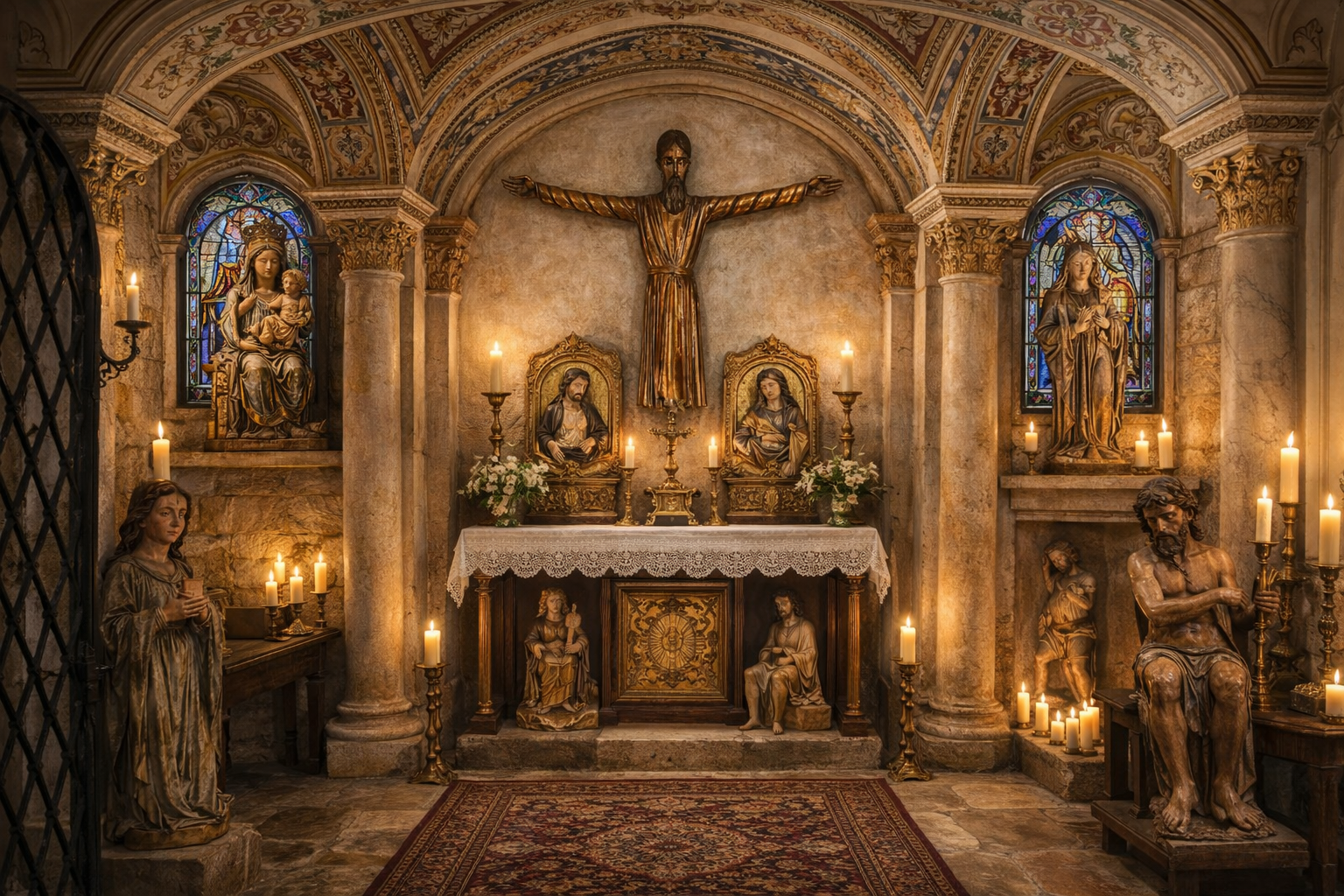 Nom : Ecce Homo et Mater Dolorosa - Bas-reliefs Gothiques du XVe Siècle, École Flamande, Polychromie et Fond d'Or
